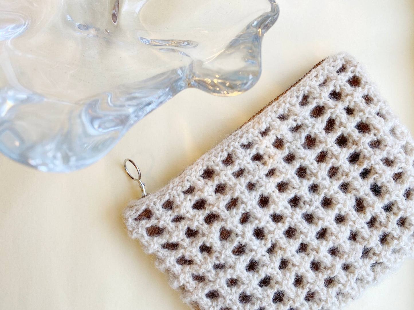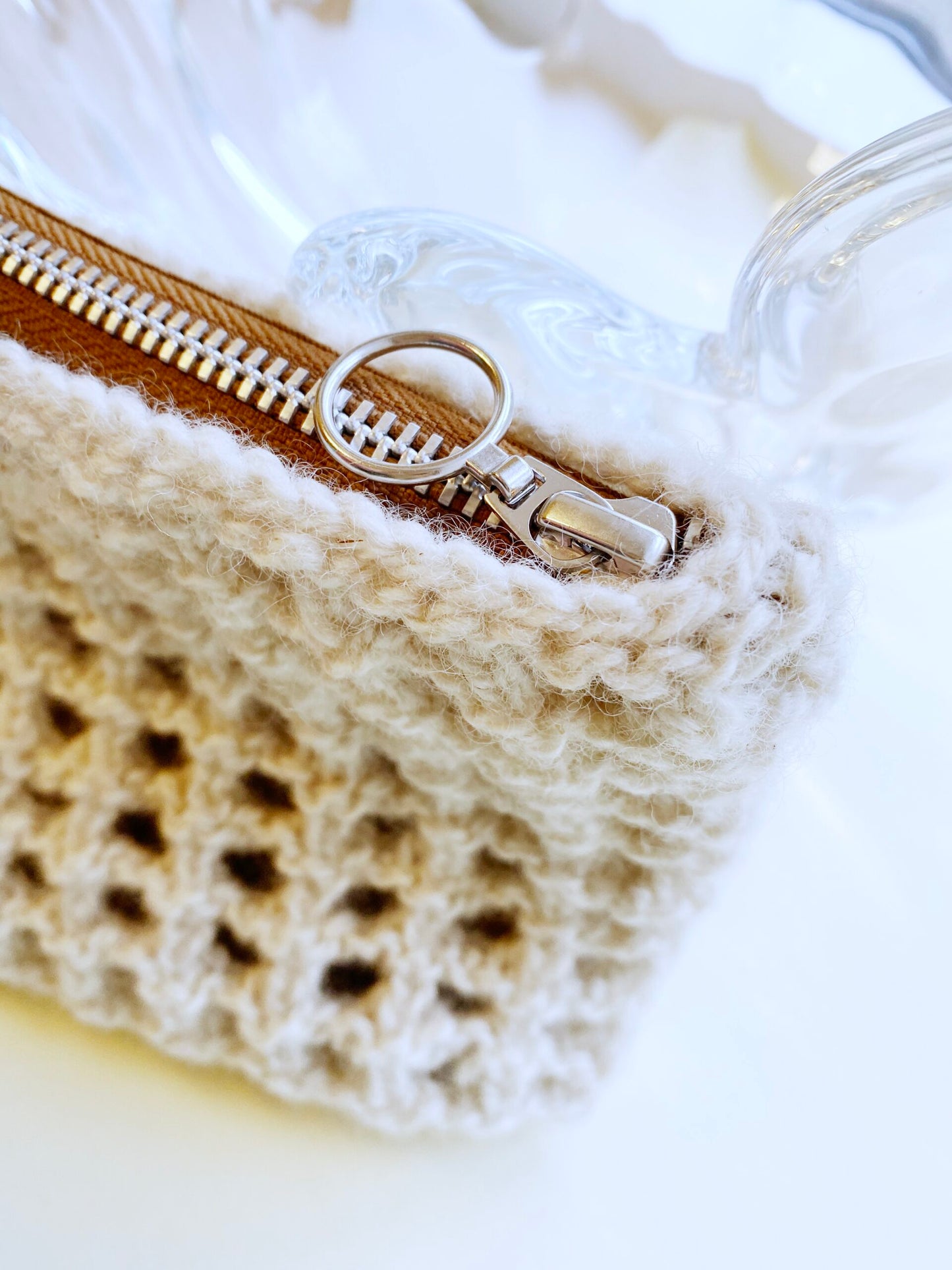 The clutch is worked bottom up. In the end, the lining is stitched onto the clutch.