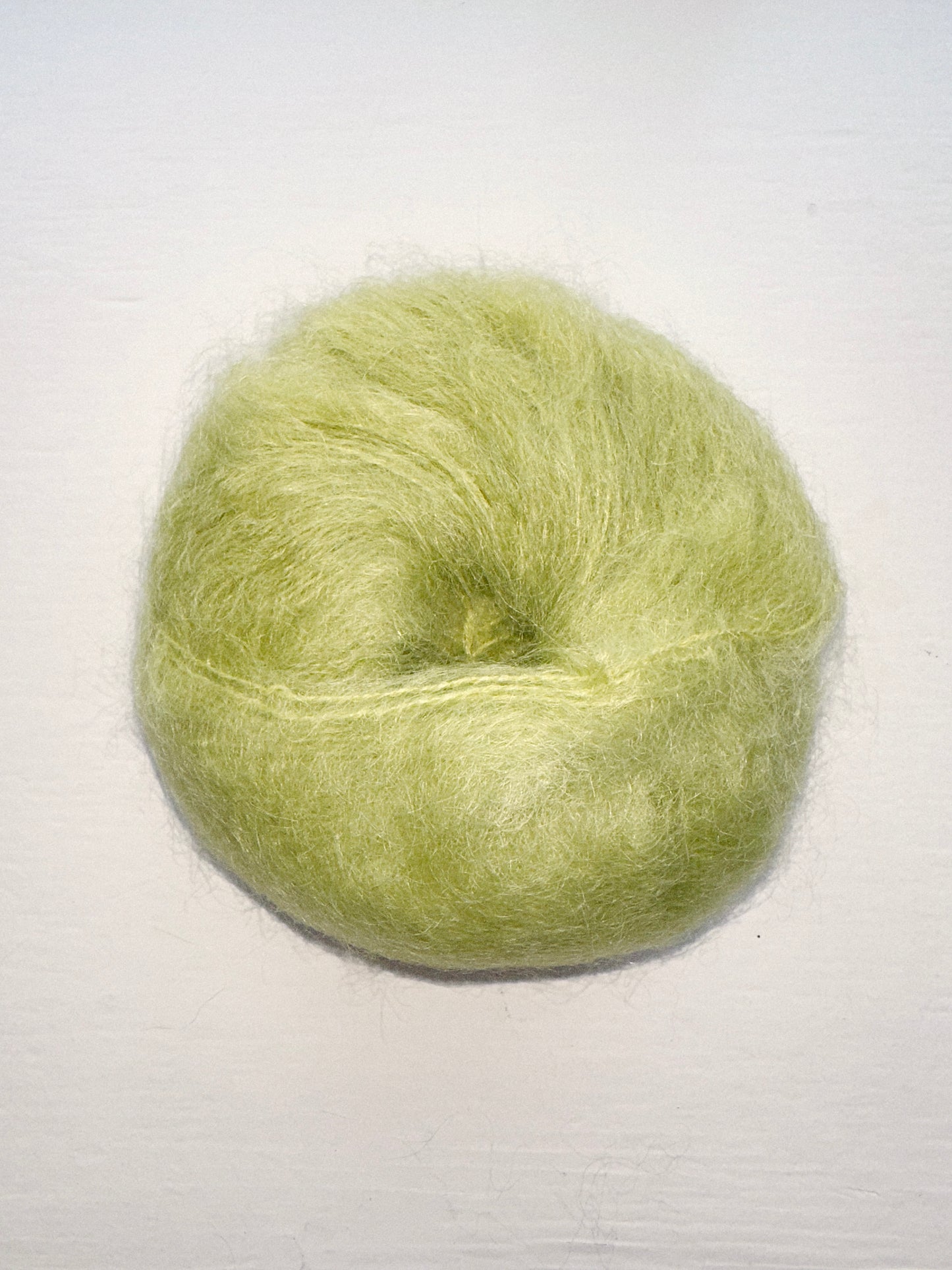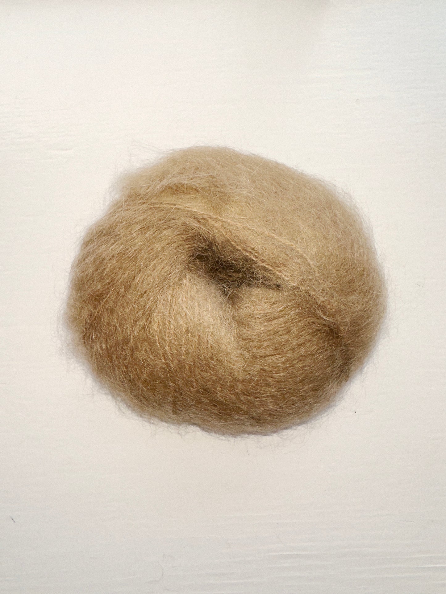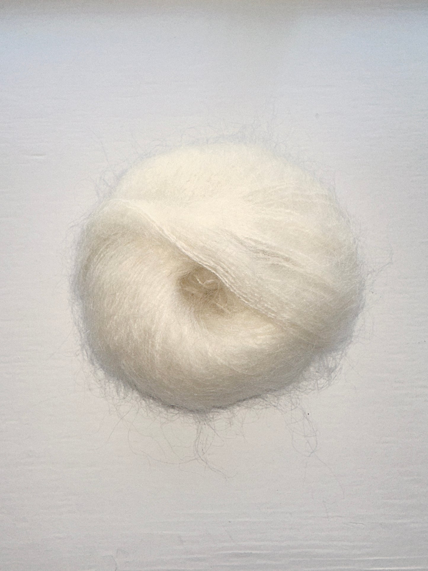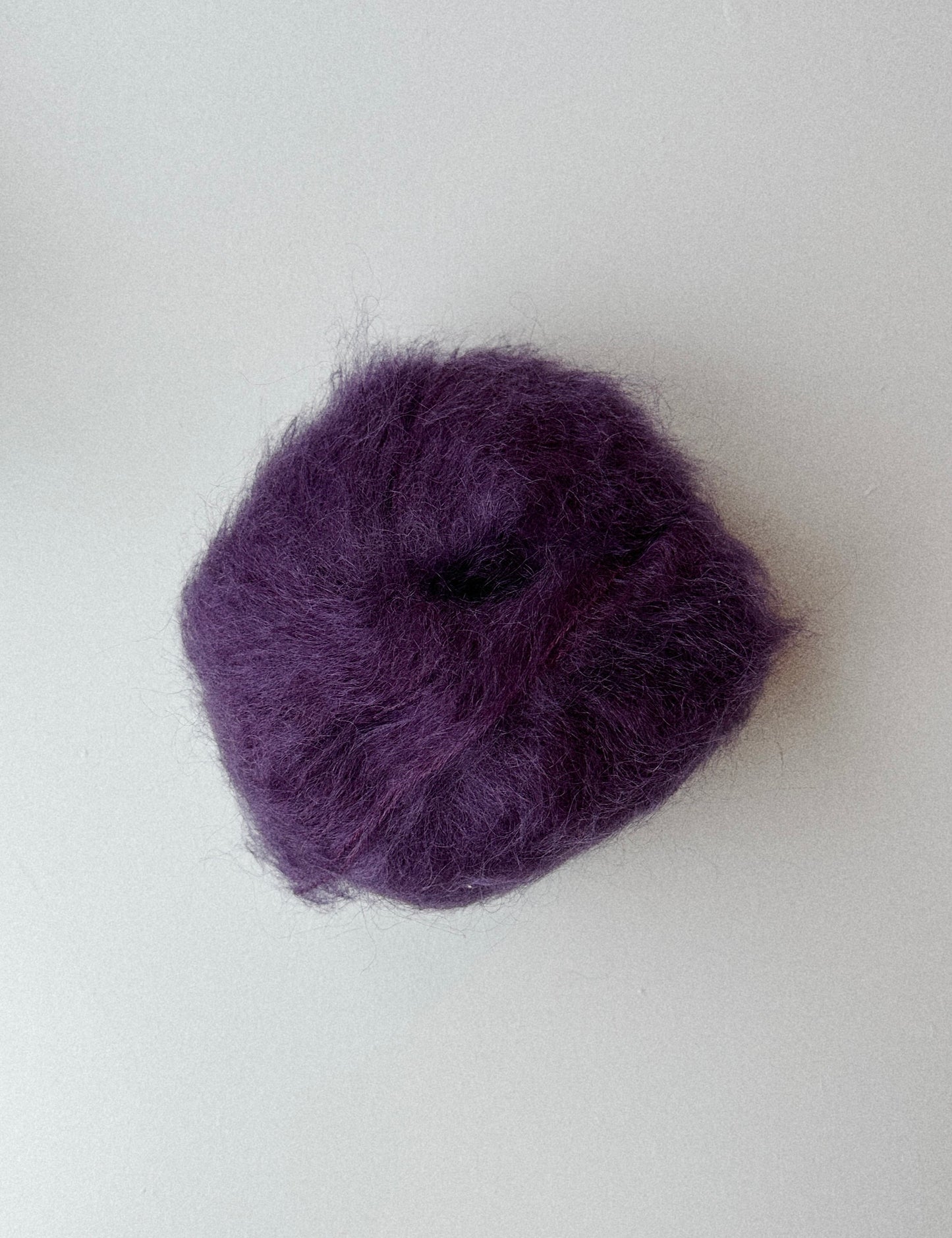 Fat Fur Hat is knitted as a long closed tube with decreases at both ends. The hat is folded into itself and folded at the bottom. The hat is knitted in a long-haired mohair yarn that as a last touch is brushed with a mohair brush so that the fibres become long and fur-like. To get the furry look it is recommended to use a long-fibred yarn like mohair, alpaca or angora.