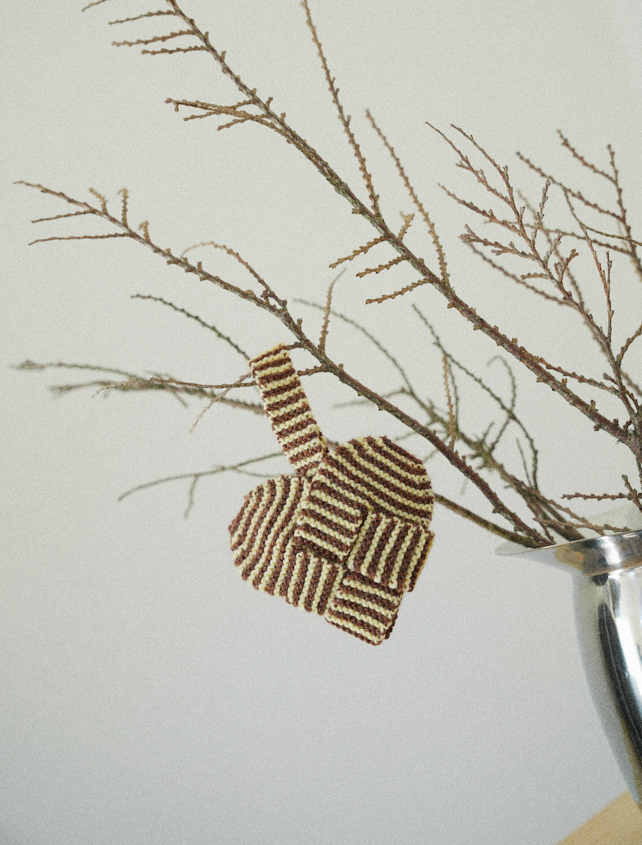 The Christmas Heart is knitted as two identical pieces, which are later woven together – just like a traditional Danish paper heart.