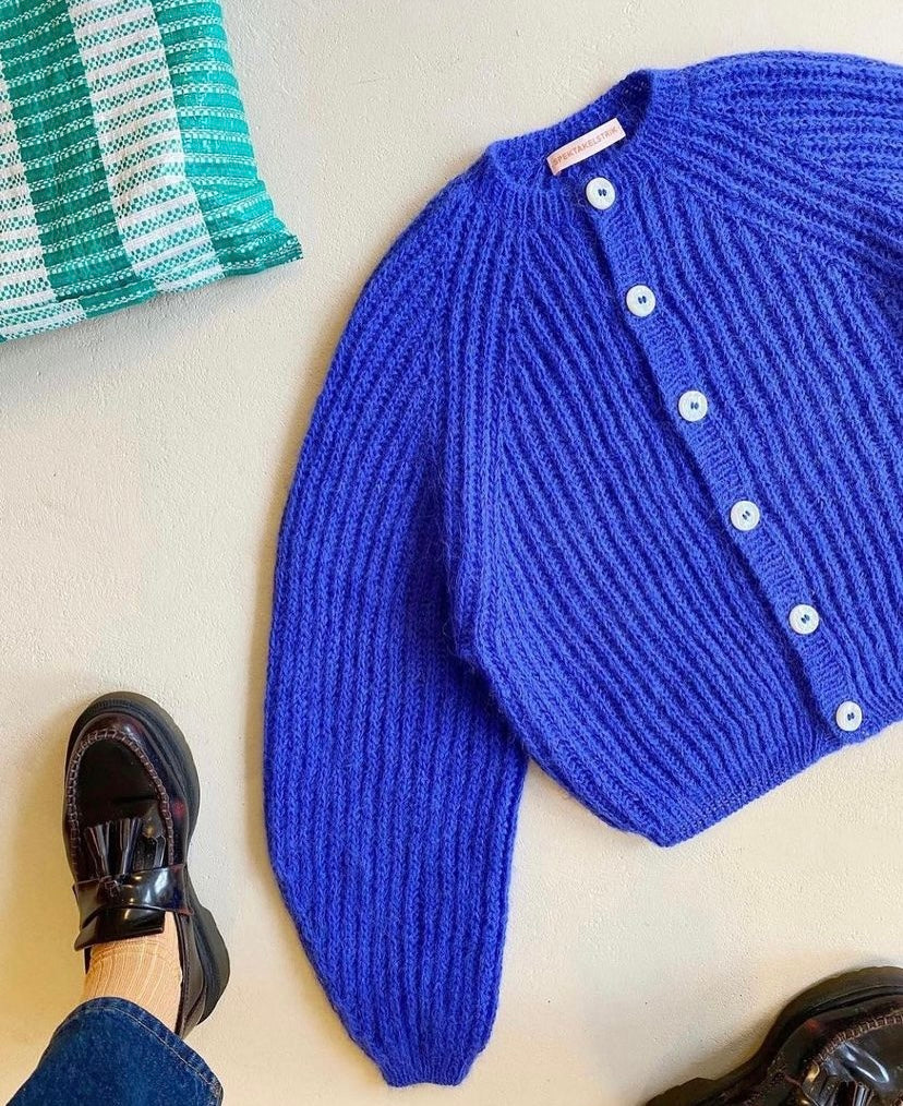 Soft like a cloud - a brioche stitch cardigan with voluminous sleeves.