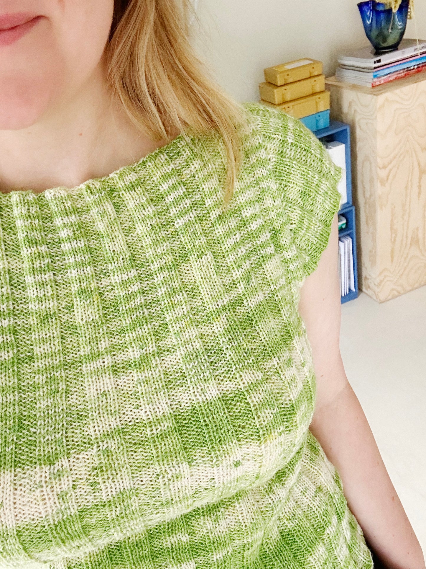 Tight fitted tee. The Solar Tee is knit from the top down.