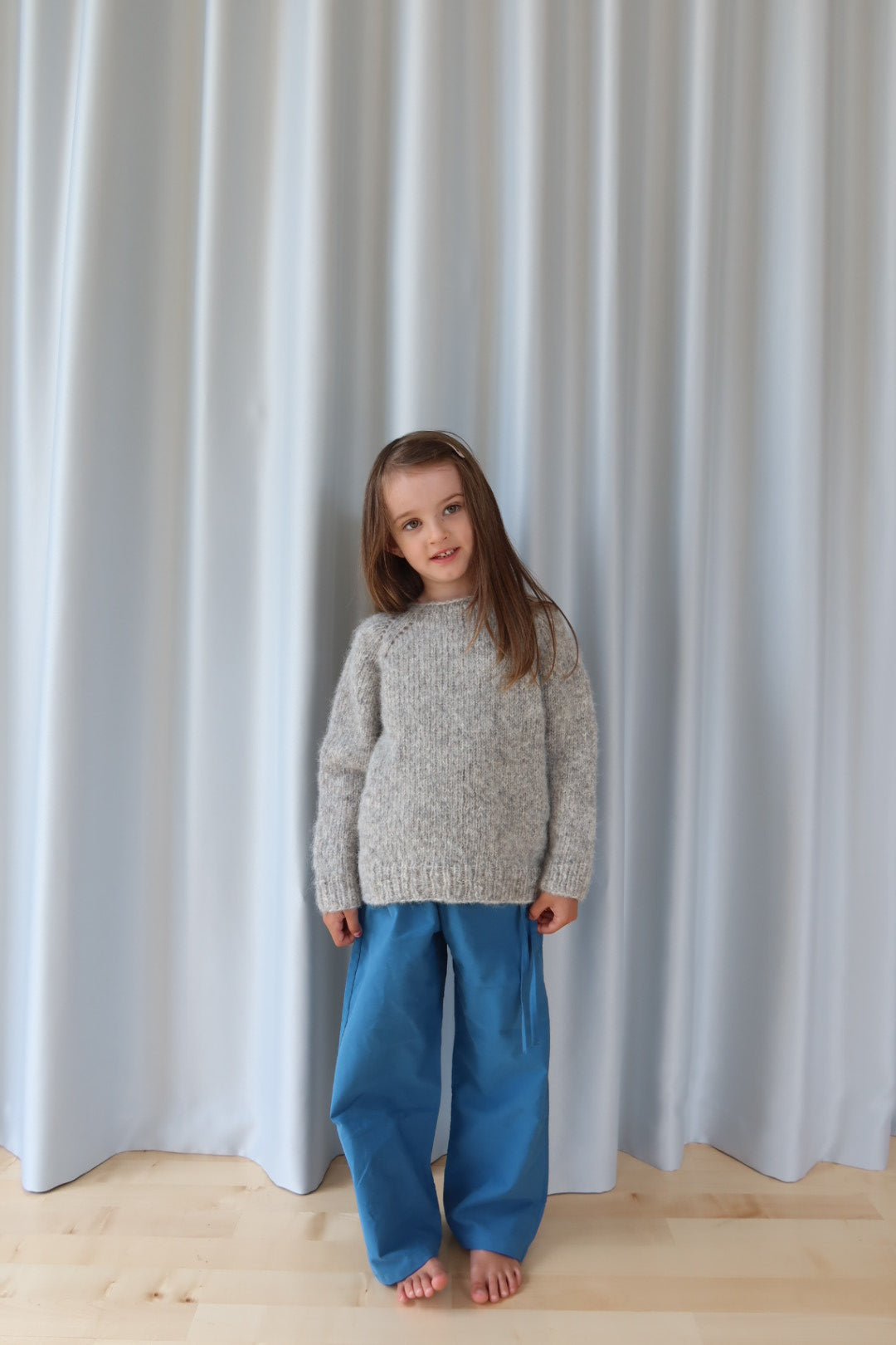 Starter Sweater kid kan strikkes, hvis du aldrig har strikket før, ved hjælp af videoer, der er inkluderet i opskriften. Sweateren strikkes oppefra og ned. Halsen er lavet af ene retmasker, og raglanudtagningerne laves ved at lave et omslag. Opskriften har ingen forkortelser